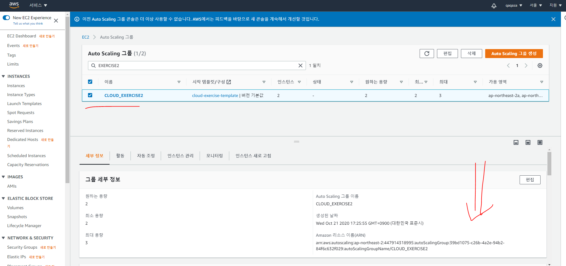 다시 오토스케일링 그룹 탭으로 이동해서 세부 정보의 아래로 스크롤 합니다.