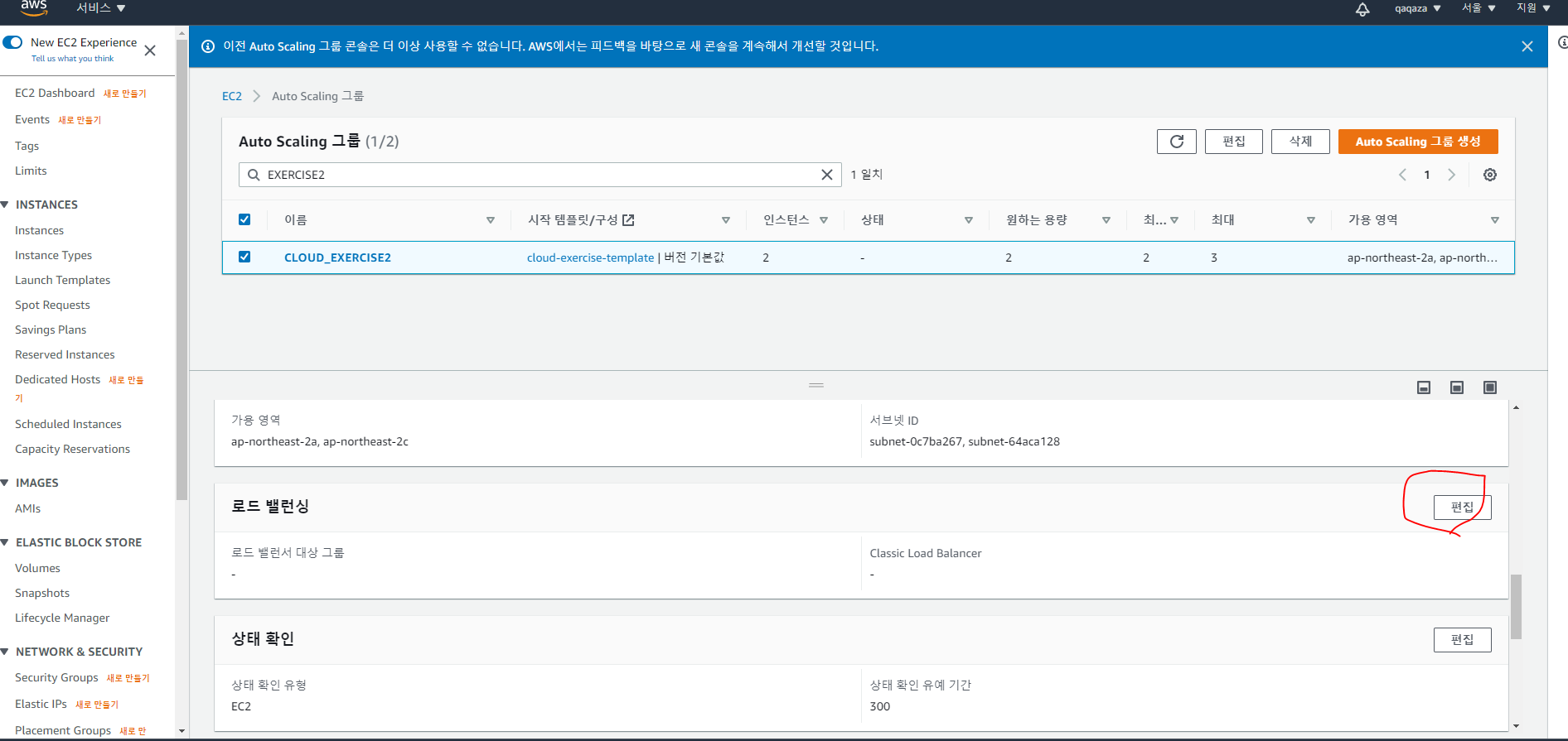 로드밸런싱 영역의 편집 버튼을 눌러줍니다.