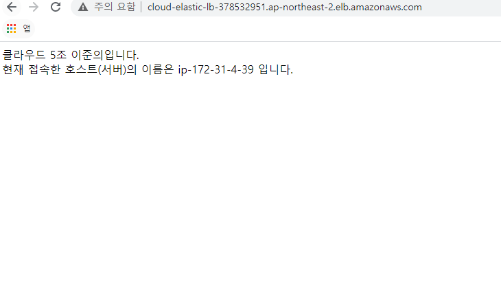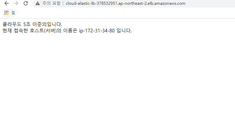 로드밸런서로 탭으로 이동해서 웹브라우저에 DNS 이름을 입력하여 서버가 호스트네임을 잘 반환하는지 확인합니다.