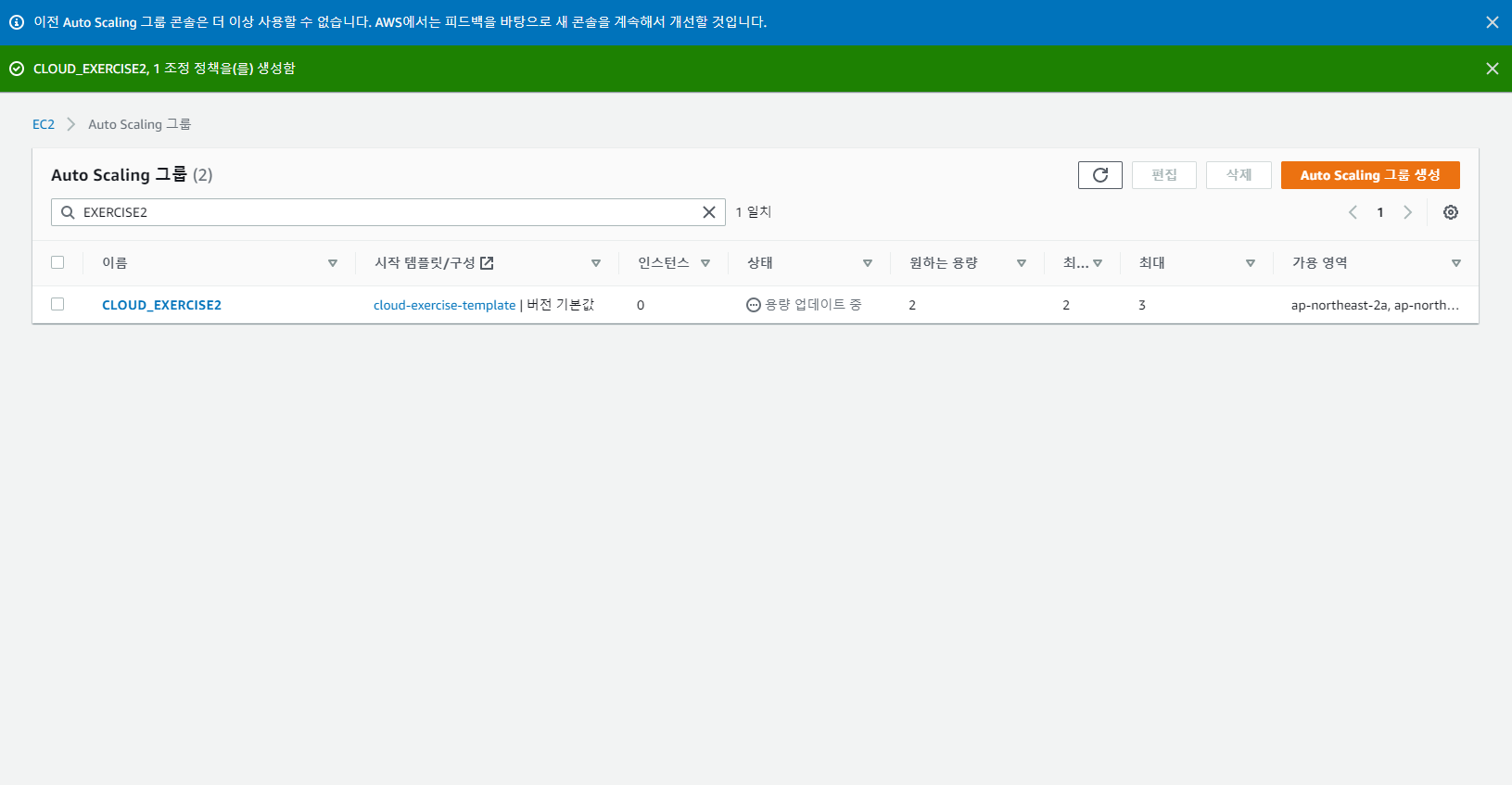 그룹을 생성하면 앞서 정의한 원하는 용량에 따라 자동으로 인스턴스가 바로 업데이트됩니다.