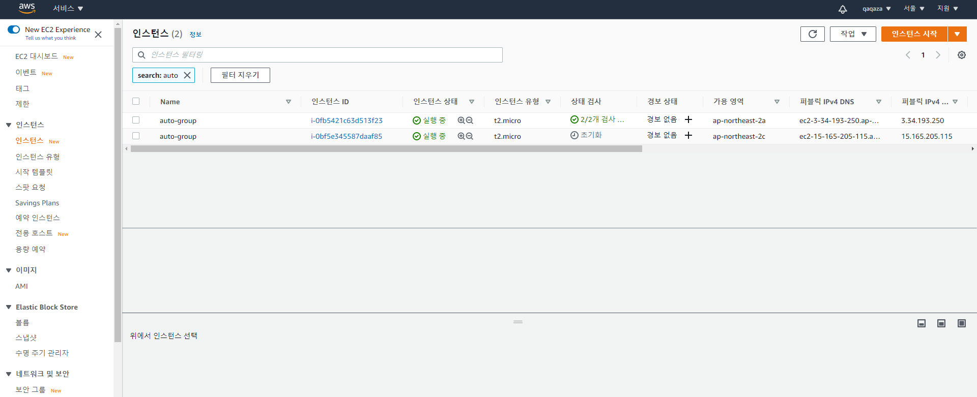 인스턴스 탭을 클릭하여 보시면 오토스케일링에 의해 자동으로 인스턴스가 생성된 것을 볼 수 있습니다.