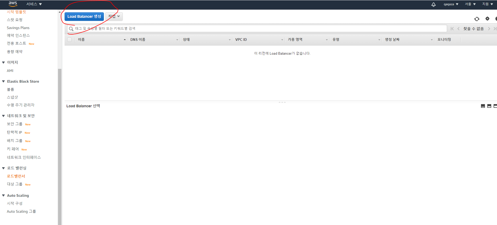 로드밸런서 탭에서 “Load Balancer”을 클릭합니다.
