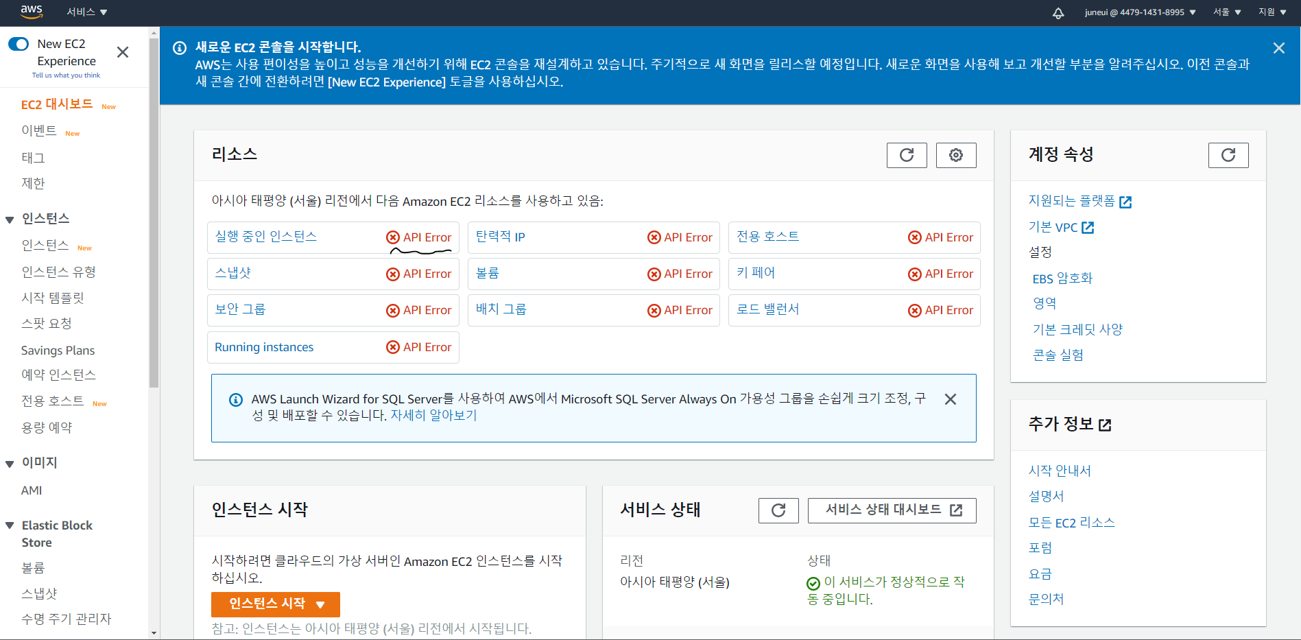 - 계정에 아무런 권한을 주지 않아, 인스턴스 보기 뿐 아니라 생성 등 모든 행위가 제한됩니다.